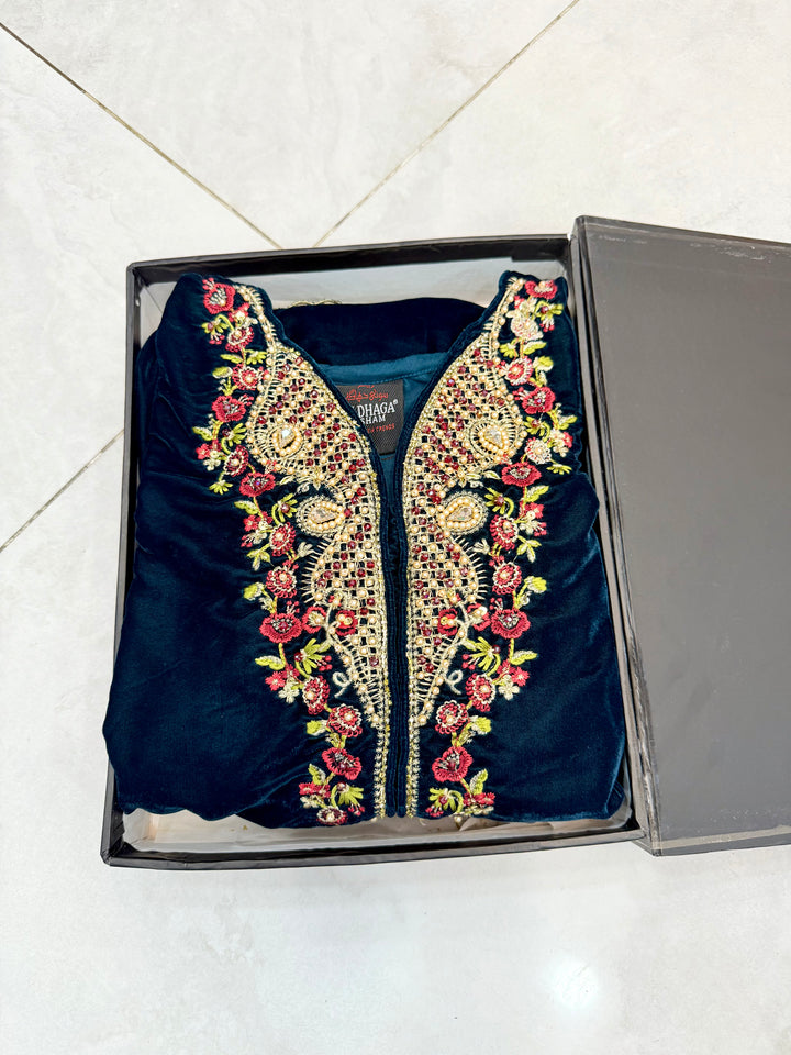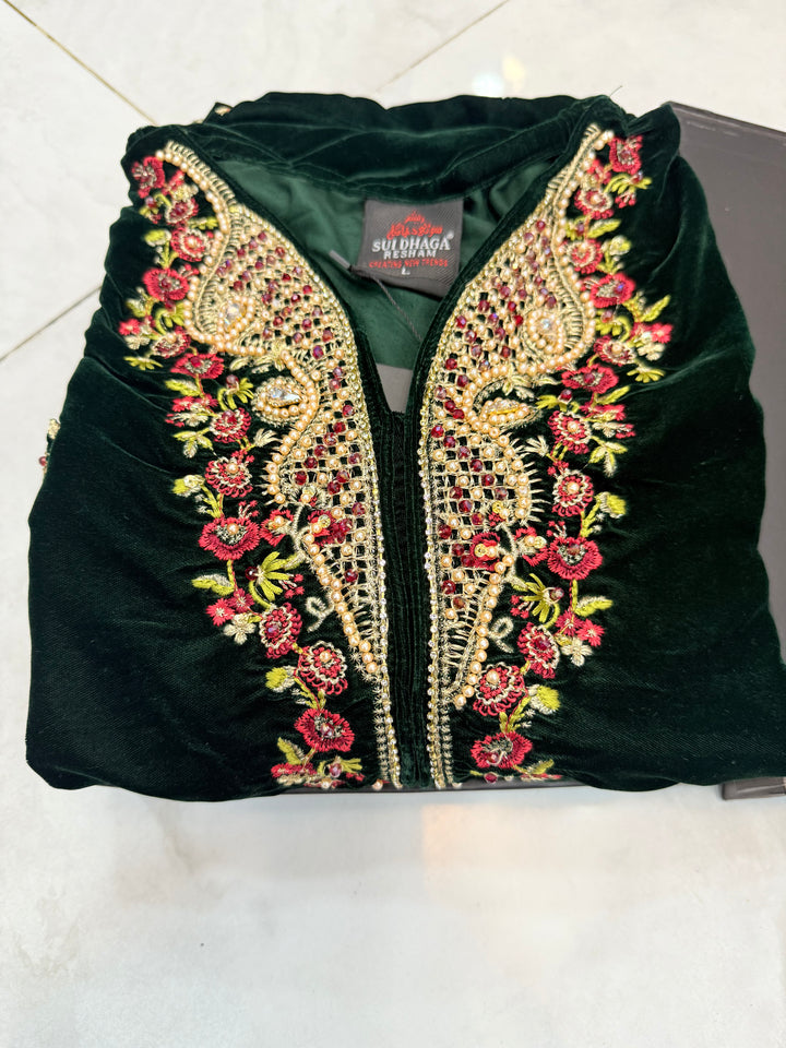 Shop the latest Luxury Velvet Dress from SuiDhagaResham.com and step into the season with timeless elegance. 💫